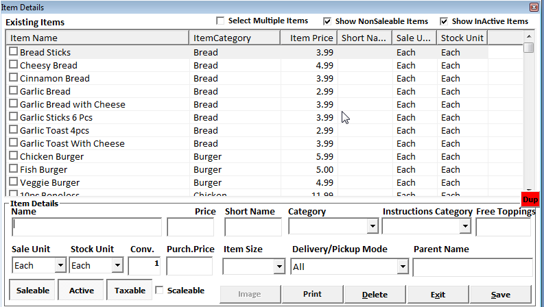 3. Enter Name of the item e.g. Creamy Garlic or Pepsi Can